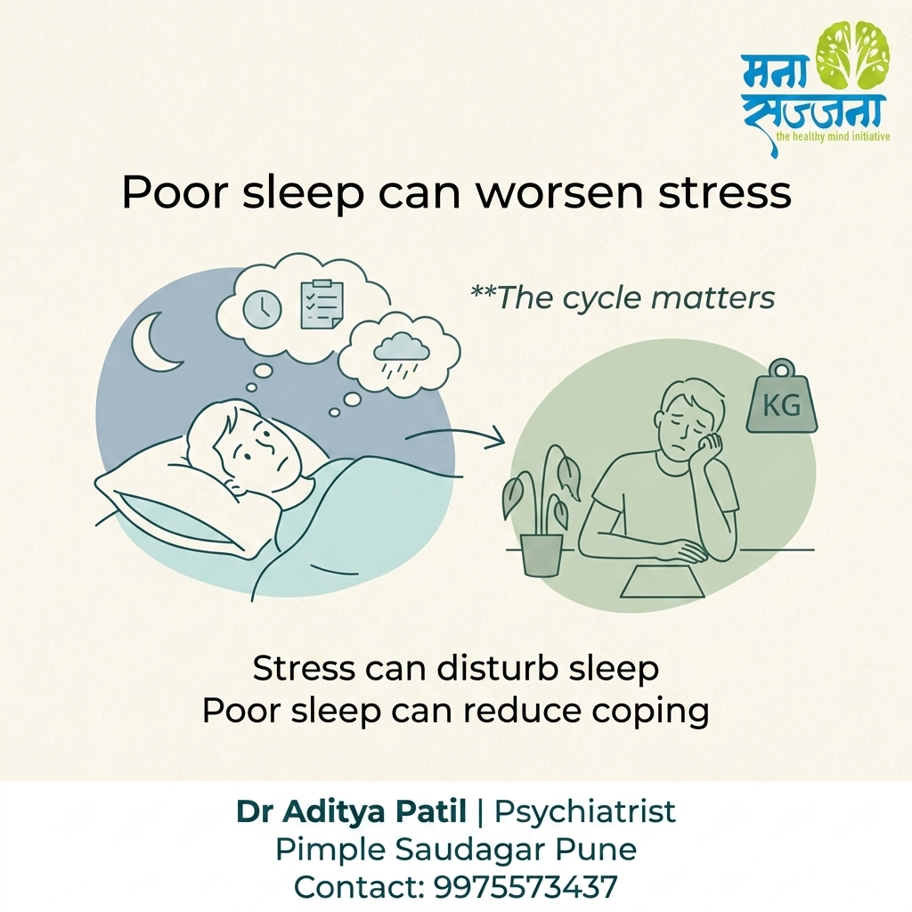 Stress and sleep are closely connected. Ongoing stress can make it harder to fall asleep or stay asleep peacefully. A person may wake feeling unrefreshed even after enough time in bed. Poor sleep can then reduce emotional balance and coping capacity the next day. This may lead to more irritability, reduced concentration, and greater mental fatigue. Over time, stress and sleep problems can begin to reinforce each other. This cycle often affects both mental and physical well-being. Recognising the connection between sleep and stress is an important step. Healthier sleep habits may support better resilience and recovery. Sleep should not be ignored when stress is affecting daily life. #SleepAndStress#SleepAwareness #MentalHealthMatters#StressManagement #MentalWellbeing
