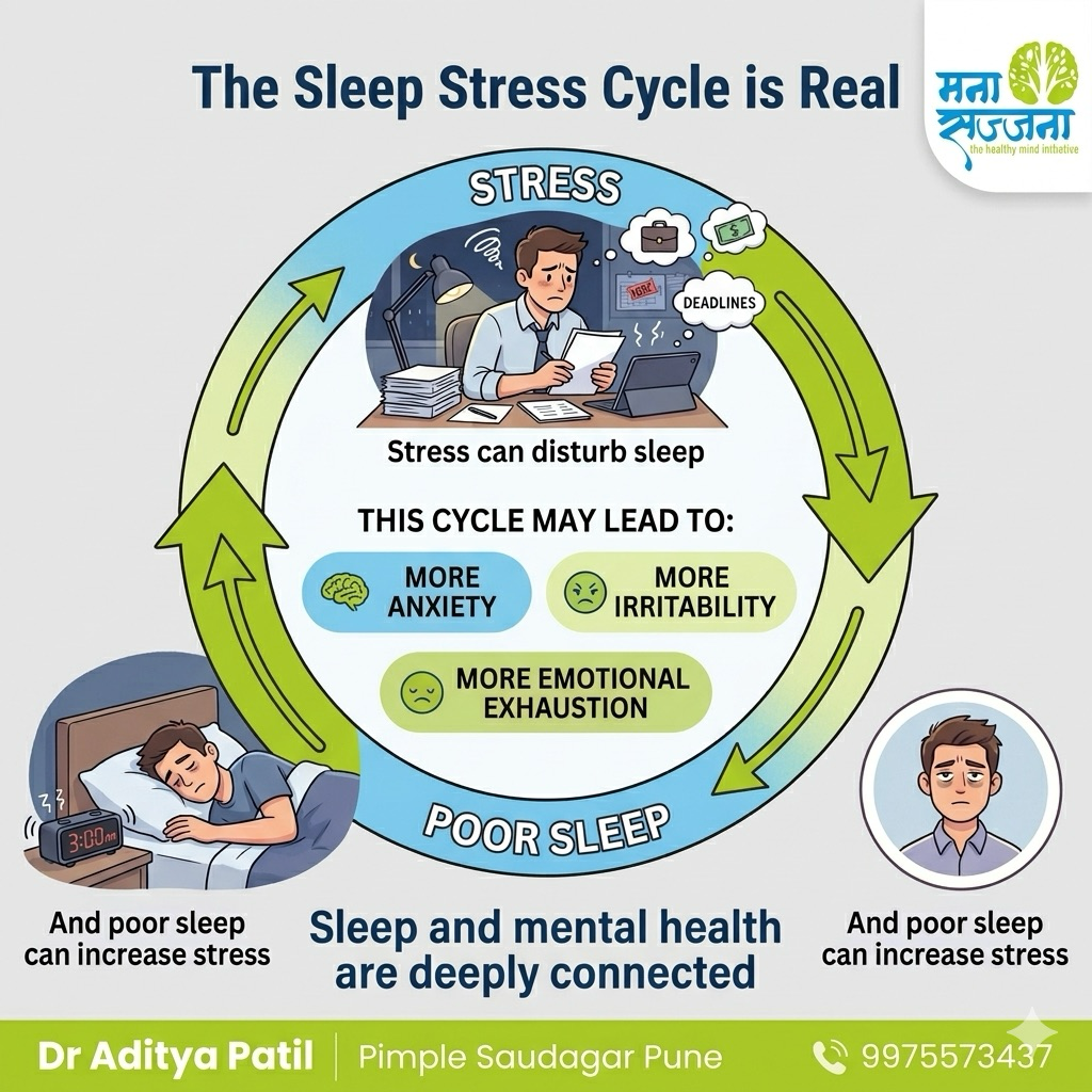 Stress and poor sleep often influence each other in a difficult and repetitive cycle. When stress levels rise, the mind may remain active even when the body is tired, making it harder to fall asleep peacefully. Disturbed sleep can then reduce emotional resilience and make a person more sensitive to everyday pressures. Over time, this may lead to irritability, anxiety, low energy, and mental exhaustion. Many people notice only the sleep problem, but the underlying stress is equally important to recognize. Poor sleep can also affect concentration, decision-making, and overall daily functioning. If this pattern continues, it may begin to impact both mental and physical well-being. Understanding the connection between sleep and stress is an important first step toward improvement. Identifying triggers and building healthier routines can often make a meaningful difference. Taking sleep concerns seriously can support better balance, better coping, and better overall health. #SleepAwareness #StressAndSleep #MentalWellbeing #HealthySleep #MentalHealthMatters